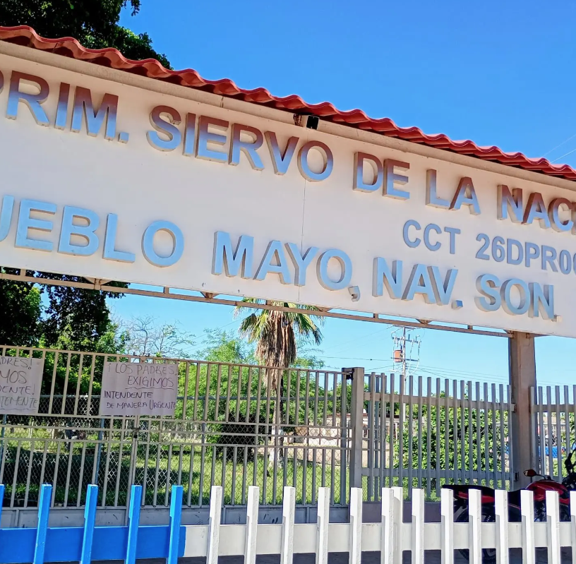 Padres de familia de la Escuela Primaria Siervo de la Nación, en la comunidad de Pueblo Mayo, Navojoa, tomaron el plantel para exigir la asignación de un intendente. Desde el inicio del ciclo escolar, no cuentan con personal de limpieza, lo que ha obligado a los padres a contratar a alguien externo para mantener el plantel.