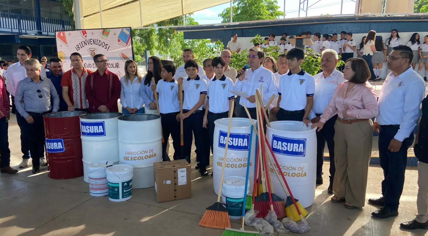 Elías Retes informó que en el municipio son más de 25 mil los alumnos de nivel básico que regresaron a las aulas, a quienes refrendó su apoyo con acciones concretas. Durante el evento entregó donaciones al plantel anfitrión, como palas, rastrillos, escobas, trapeadores, pintura, impermeabilizante y contenedores de basura.