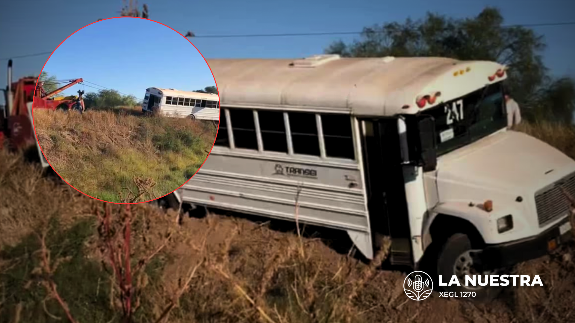 El incidente ocurrió en la madrugada de este jueves, cerca de las 06:30 horas, en el cruce de la calle 300 y la calle 2, en el Valle del Yaqui. Según los primeros reportes, el camión Freightliner de color blanco viajaba rumbo al parque industrial cuando, al tomar una curva, un sedán Ford Fusion de color rojo invadió sorpresivamente su carril. Ante la inminencia del choque, el operador del transporte giró bruscamente hacia la derecha, lo que provocó que la unidad se saliera del camino y quedara varada con sus llantas delanteras atrapadas en el borde de un dren.