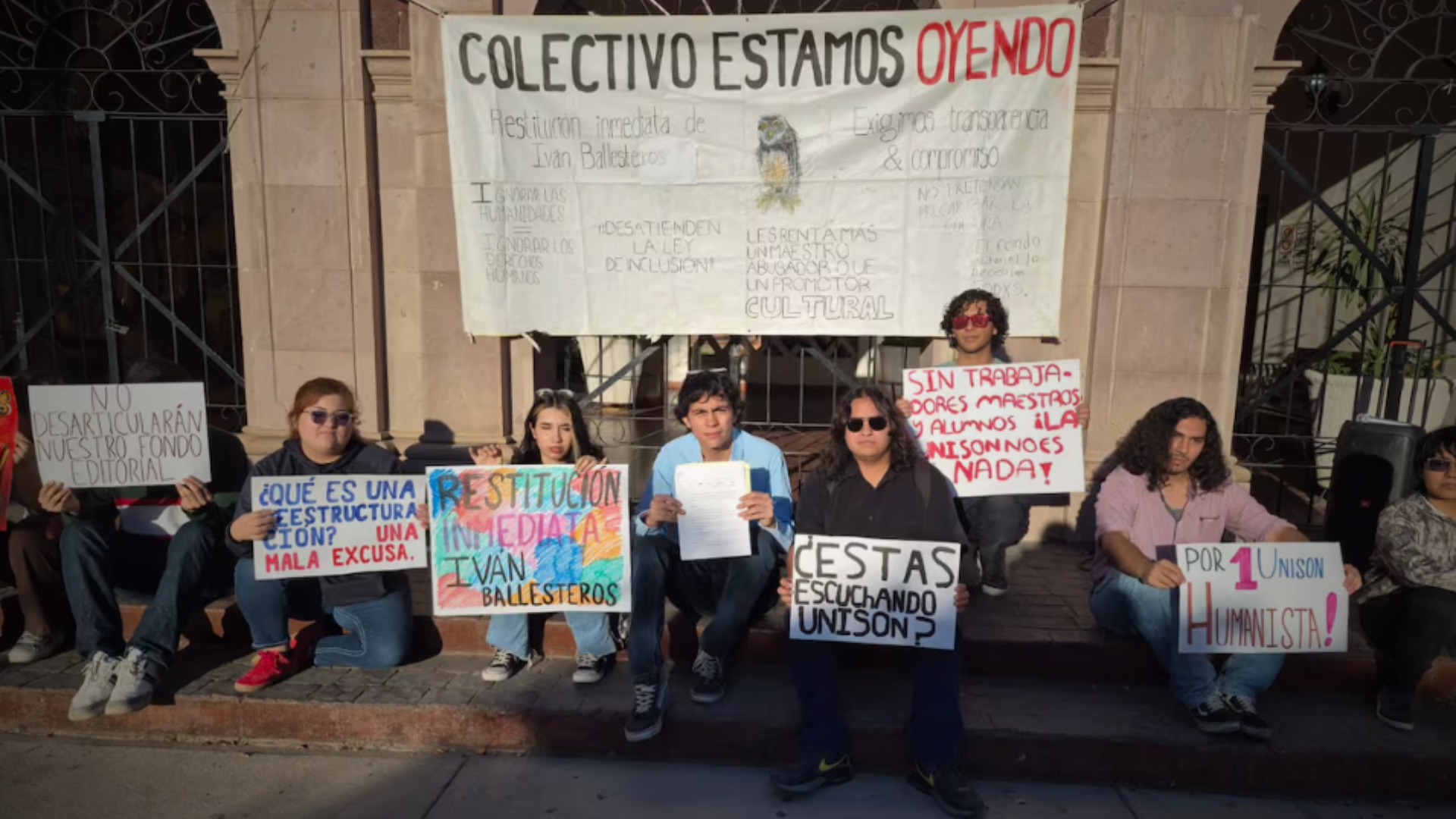 La mañana de este miércoles, estudiantes de la Licenciatura en Literaturas Hispánicas de la Universidad de Sonora (Unison) tomaron las instalaciones del Departamento de Letras y Lingüística para exigir la restitución inmediata de Iván Ballesteros como director del Fondo Editorial de la Unison, así como para visibilizar una serie de denuncias de abuso de poder, acoso sexual sin resolver y falta de inclusión que, aseguran, han sido ignoradas por la administración universitaria.